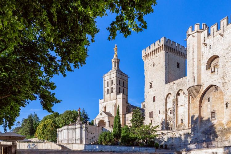 Beautiful view of Notre Dame des Doms Cathedral and the Palais des Papes, Avignon, France.