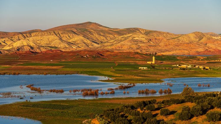 - © Alberto Loyo / ShutterstockBetween the rocky Haouz plain and the desert lies the Marrakech oasis, dominated by the eternal snow of the high Atlas peaks. This region is undoubtedly the most visited in the Atlas and is particularly good for hiking. More and more travellers are exploring the wild foothills of Mount Toubkal, for example, the highest peak at 4,167 metres! Further south, the valleys offer picturesque landscapes, punctuated by red earthen kasbahs and palm groves with Berber accents.