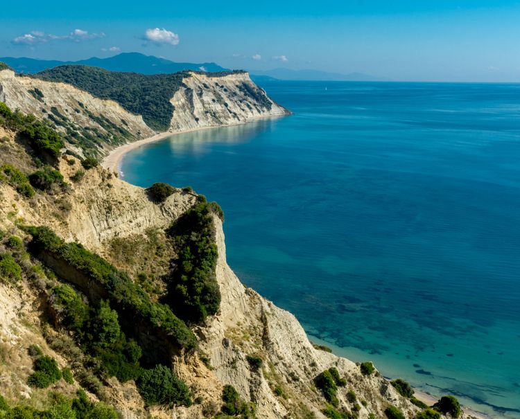 On the track leading to Potamakia beach, turn left at the penultimate junction: it will take around 30min to reach Asprokavos headland and the monastery of Arkoulidas. The path, the start of the Corfu Trail, is signposted in yellow.