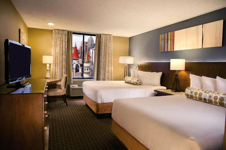 The rooms accommodate between 2 and 4 travellers, with furnishings that are more classical than the exterior architecture and better equipped than in the Middle Ages. The beds are extremely comfortable, and we all know that after a night out in Las Vegas, rest is essential! The hotel is located at the beginning of the Strip, the city's flagship street, with its many hotel-casinos, each bigger than the last, and a very special atmosphere.