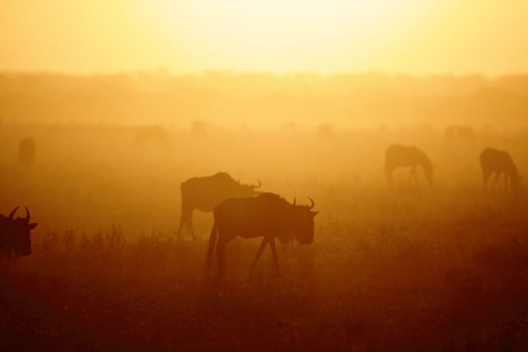 A vast line appears on the horizon, wildebeest meandering in the distance. An Ariadne's thread that stretches as far as the eye can see, the herds are entering migration and can be more than 40 kilometres long. For thousands of years, the wildebeest have criss-crossed the Serengeti with the seasons in search of new pastures and fresh water to drink.