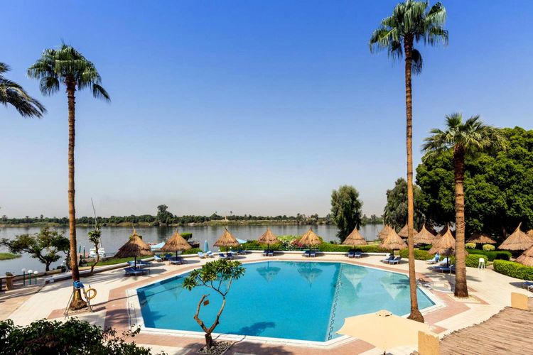 Located in the centre of Luxor, the Pyramisa Hotel Luxor enjoys an exceptional location: close to the city's main tourist attractions, on the banks of the Nile. An idyllic view that is best enjoyed from the two beautiful outdoor pools or from the chicha corner, which is very pleasant in the evening. This is a standard hotel, chosen above all for its outdoor setting.