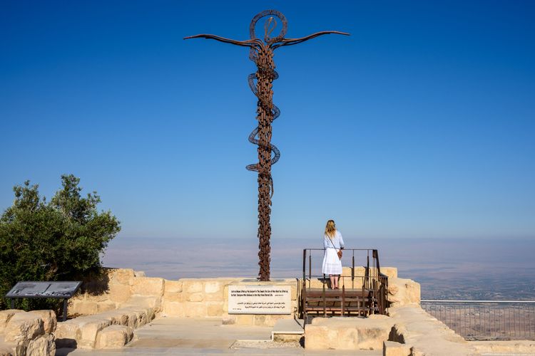 Presumed to be the site of Moses' tomb, Mount Nebo is best explored early in the morning. With the sky still clear, you can contemplate the formidable panorama of the Jordan depression and the Dead Sea, before the strong evaporation of its waters plunges the landscape into a compact mist. In the distance, on the hills of Judea, you can sometimes make out the heights of Jerusalem.