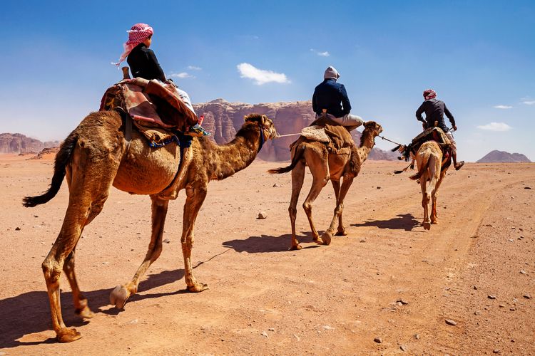 Camel ride in the Wadi Rum desert.