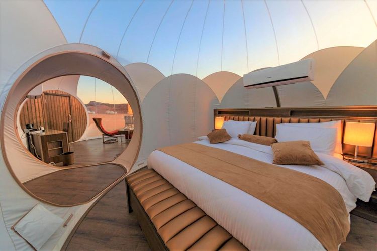 - © Wadi Rum Bubble Luxotel / Booking.comFor a truly unforgettable night of luxury, the 5* Wadi Rum Bubble Luxotel offers you the chance to sleep in transparent bubbles, with a breathtaking view of the Wadi Rum desert and the Milky Way, far from any light pollution: a spectacle of nature.