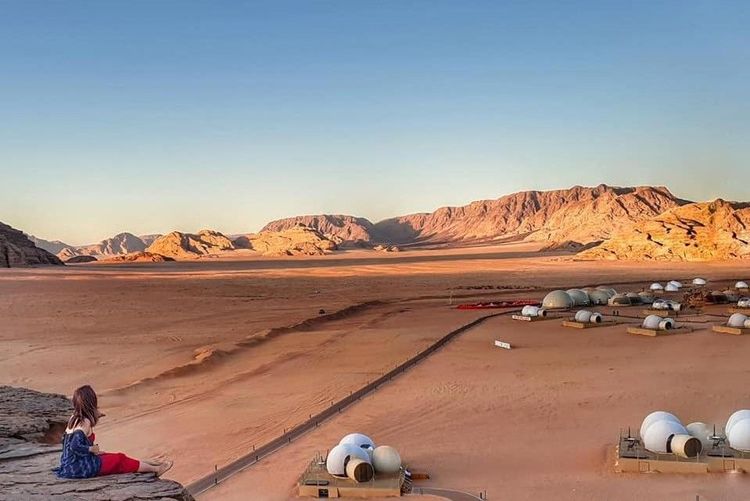 Aerial view of the Wadi Rum Bubble Luxotel.