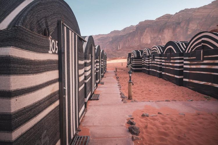 - © Wadi Rum Desert Adventures / Booking.comIf the slightly rootsy Bedouin camp experience doesn't appeal, you can opt for more luxurious tents at Wadi Rum Desert Adventures, in the heart of the Jordanian desert. The tents are connected to the electricity grid and, although the sanitary facilities are shared, the showers are hot and of good quality.
