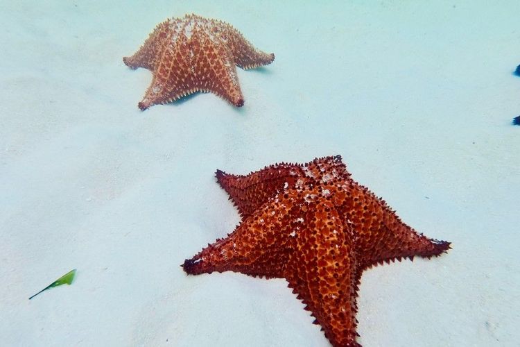 Giant starfish are plentiful off the coast of Saona and are easy to spot as the water is very clear and shallow.