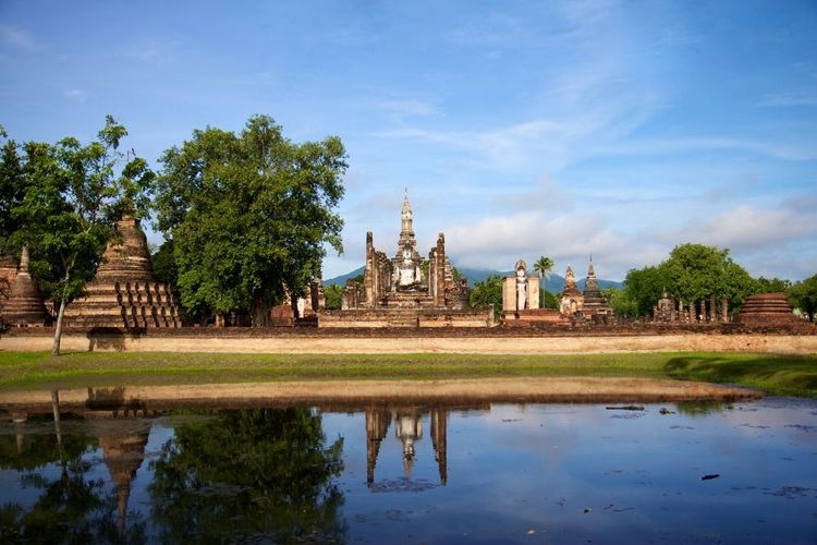 Sukhothai Historic Park was the capital of the Kingdom of Sukhothai, which was established in north-eastern Thailand in the 13th century. Sukhothai and the surrounding region were part of the Khmer Empire until the early 13th century. When the Khmer Empire was in decline, the local population called Siam revolted and took power under King Si Inthrathit. Thus Sukhothai became the first kingdom. It was a golden period in Thai history. The kingdom lived up to its name, Sukhothai, which means "the dawn of happiness".