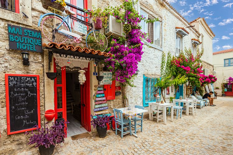 Beyond the kitschy shops that play techno music and where multicoloured bracelets adorn the shelves, past the restored mills on the heights, past the church-mosque... welcome to the heart of Alaçati, where the deafening noise gives way to a captivating jazz melody and the rhythms of the Buena Vista Social Club.