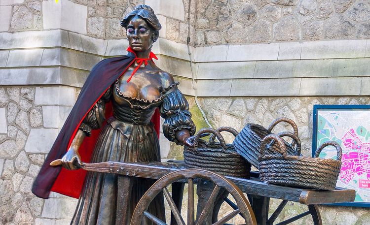 The beautiful Molly Malone still haunts the streets of Dublin. And with good reason: she is a character whose sad life is sung in a traditional song that has become something of an Irish anthem. So much so that a statue of her was erected in 1987 to celebrate the city's first millennium. It can now be seen in St Andrew's Street.