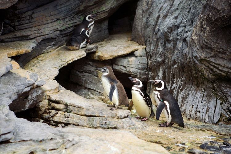 A family of penguins at the Oceanarium in Lisbon, Portugal.