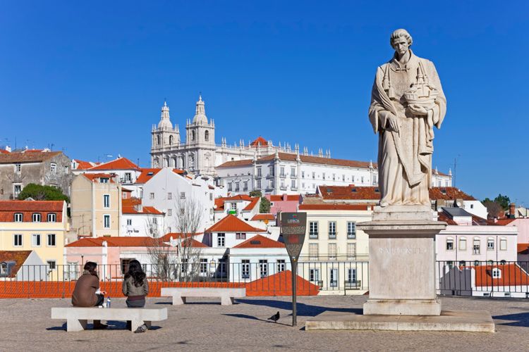 Statue of Saint Vincent, Portas do Sol viewpoint, Lisbon, Portugal.