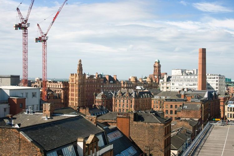 Manchester’s skyline, still dominated by traces of its industrial past.