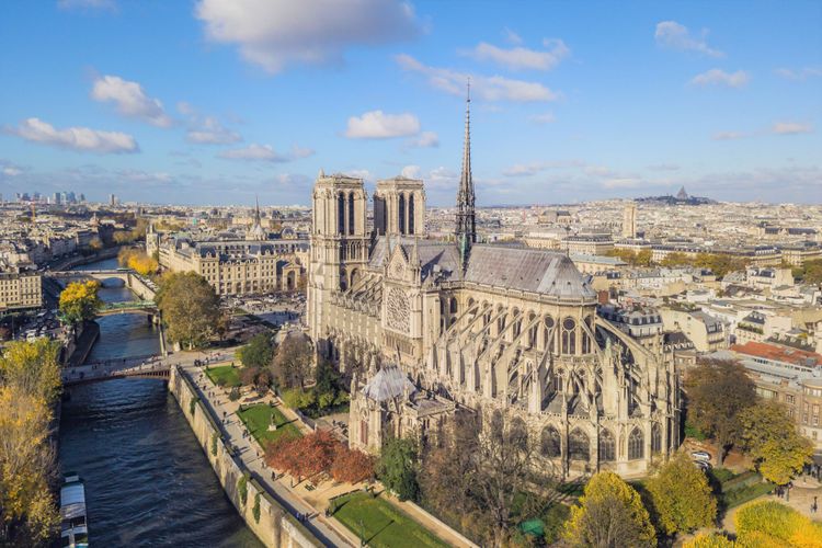 Aerial view of Notre-Dame de Paris.
