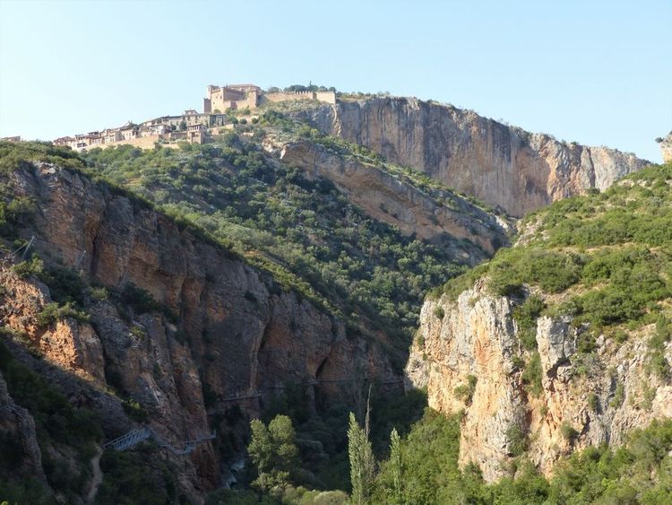 The Vero river canyon path is located in Alquezar, Huesca, Aragón. Within the River Vero Cultural Park you can tour an outdoor museum with cave paintings and ogle at the view over the canyon. If you want to take the footpaths route you will have to start in Alquézar and follow the “Pasarelas de Vero” or “Footbridges of Vero,” signage. The footbridges are easy for hikers of any level to access and even allows you to access the cave of Picamartillo and a natural turquoise pool you can swim in.