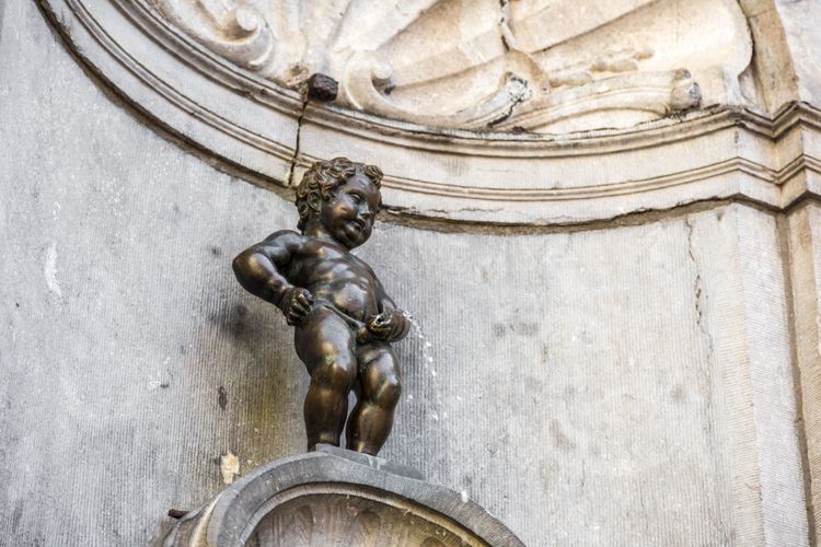 Profile view of the Manneken Pis in Brussels, Belgium.