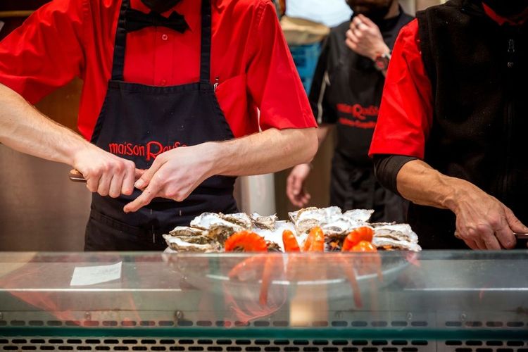Les Halles de Lyon - Paul Bocuse isn't just a market, it's also a place to eat and drink! Many of the stalls offer the opportunity to take advantage of the excellence and knowledge of the shopkeepers, so that visitors can enjoy a meal. The discoveries begin at Maison Rousseau, with a small platter of freshly opened oysters. These renowned shellfish specialists are part of the history of Les Halles, and they were also present on Place des Cordeliers! Giraudet's quenelles from Lyon attract visitors with a taste for local cuisine. In a classic version or seasoned with poultry, fish, cheese or herbs, the spoon-moulded quenelle conveys the knowledge and passion of the chefs in a single bite.