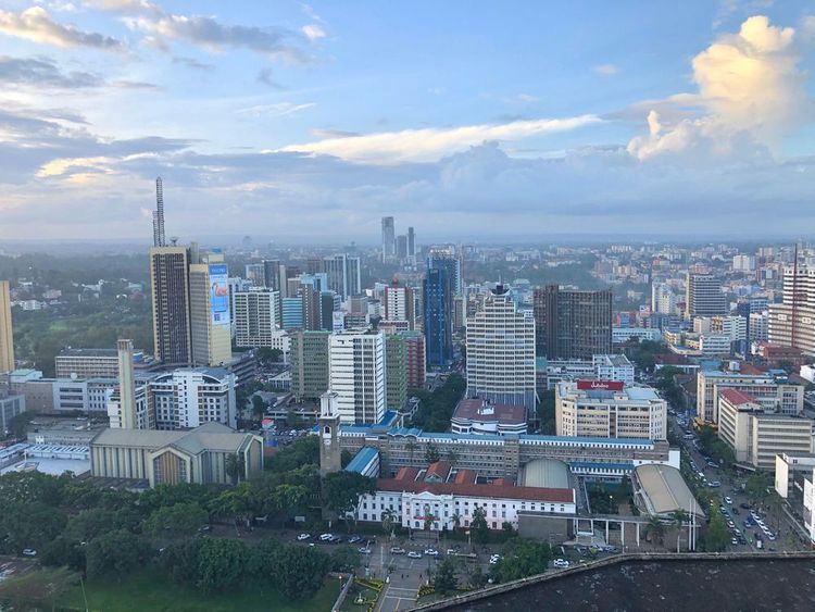 Nairobi, a hilltop capital where life is good. Its altitude means that it enjoys a pleasant climate all year round. The average height of the city is 1,660 metres. Its highest point is 1,850 metres. One of the city's highest points is the tower of the Kenyatta International Conference Centre.