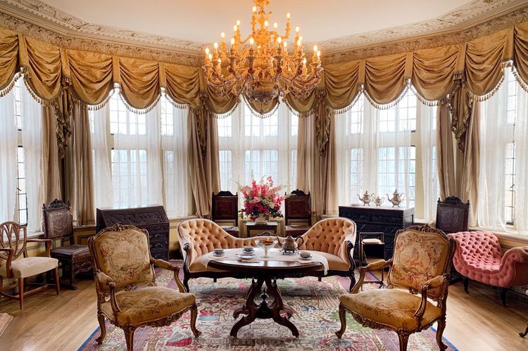 It has 98 rooms, including 30 bathrooms, 25 fireplaces, 5,000 light bulbs, 59 telephones and a 244-metre-long underground tunnel.