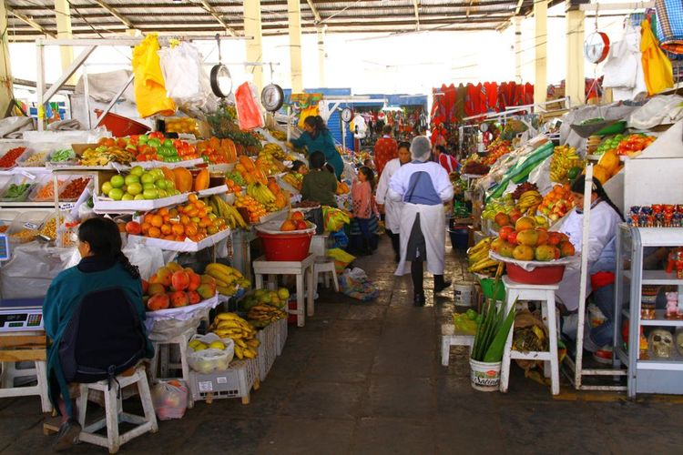 Just a few streets away, the San Pedro market is open all day until 6pm. It's the biggest market in Cusco and a great opportunity to discover the local produce, including countless varieties of potatoes, maize, quinoa, chillies and exotic fruits... Part of the market is dedicated to fast food, and you can sit down next to the locals for lunch. Depending on your appetite: caldo de gallina (typical local broth), tallarin (fried noodles), arroz mixto (rice with bananas (platana) plantin tomatoes egg (huevo) and/or avocados (palta) or the famous lomo saltado (stir-fried beef, onions, soya tomatoes and vinegar served with rice and chips), a real treat at around €4 a dish.