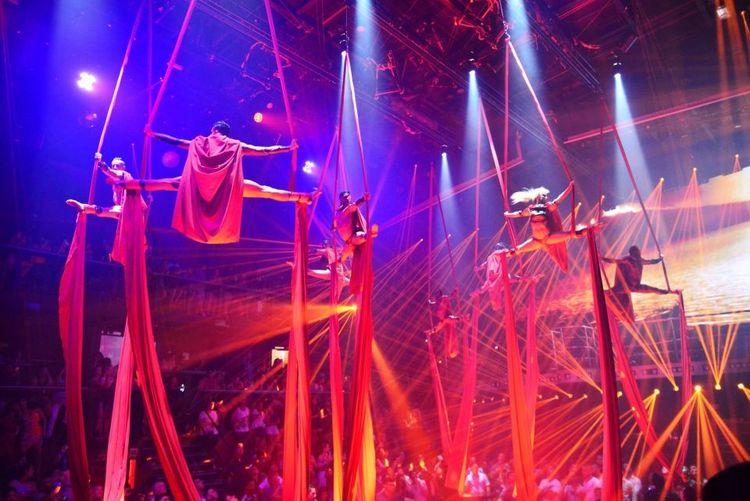 The crowd begins to gather at 10.30pm, at the foot of a giant Spiderman that can be seen in the distance from the motorway! There's already a great atmosphere inside, but the real show starts at 11pm and doesn't finish until 3am. Of course, you're free to leave whenever you like, and there are regular shuttle buses to take customers back to their hotels, or taxis, which aren't too expensive.