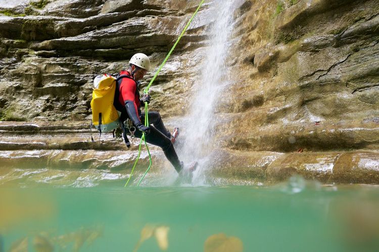 Canyoning is a thrill-seeking sport in which you move through a watercourse of varying length and speed. The aim is to climb over obstacles to reach your destination. On your way, you'll encounter waterfalls, gorges, narrow ravines, etc. It's great fun for all the family, and can be done in any natural area with landforms and water. There's no boat involved! You walk, jump, swim and sometimes even slide down the circuit's slides. It's a hybrid sport that combines climbing, white-water sports and hiking.
