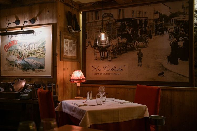 La Calèche is a restaurant in the town of Chamonix that never ceases to delight the taste buds of its guests. The first thing you notice is the Savoyard atmosphere, with all the wood panelling, copper pots and pans, unusual decorations and so on. For dining, the seats are shaped like armchairs, providing unfailing comfort throughout the meal.