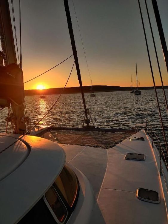 What better way to enjoy the most breathtaking sea views than sleeping directly on the water? Situated in a small, quiet bay just off Porigo beach, this magnificent catamaran with its bedroom, fully equipped kitchen and terrace will give you the most romantic night of your life.
