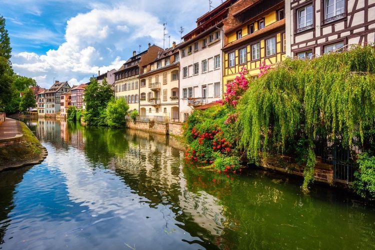 Strasbourg's urban landscape and its river in spring, France.