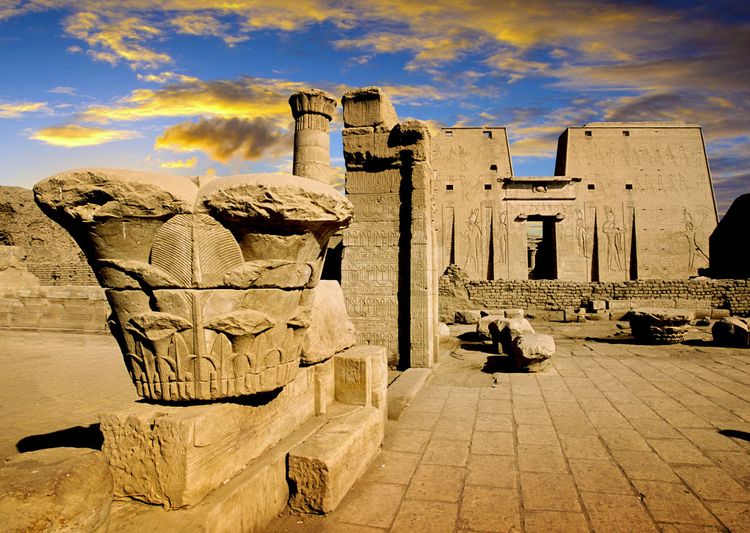 - © Babar760 / 123RFEdfu and its famous Temple of Horus lie some 105 kilometres south of Luxor. The temple stands on the west bank of the river, opposite the Karnak and Amun temples in Luxor. As soon as you dock, you'll be able to see the temple's trapezoidal pylon, which will remind you of the one in the Temple of Amun. Once inside the enclosure, a beautiful granite statue of the god Horus, depicted as a bird of prey and wearing a double crown, will face you. The temple, which is accompanied by a second, smaller temple, is rich in hieroglyphs and ruins. Its large inner courtyard and colonnades are well worth a visit.