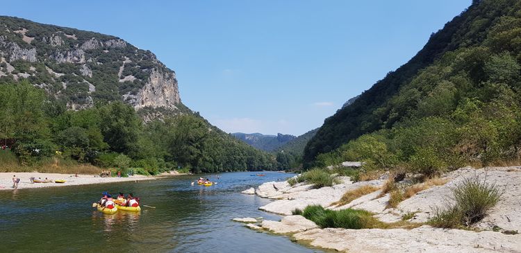 Between Sampzon and Saint-Just d'Ardèche, many holidaymakers take to the water every year to paddle several kilometres in a canoe. For 6, 8, 12, 24 or even 32 km, the scenery flies by to the rhythm of the paddles.
