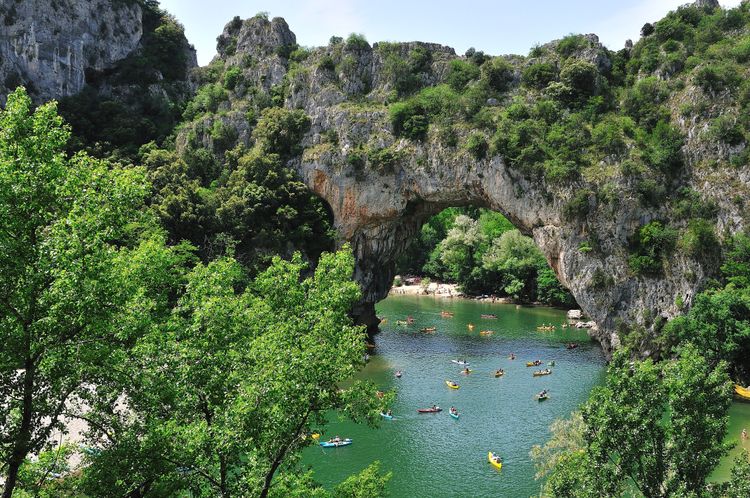 The highlight of the descent is crossing under the Pont d'Arc, a unique and impressive experience. This natural arch is crowded with tourists, who come to admire and photograph this symbol of the Ardèche.